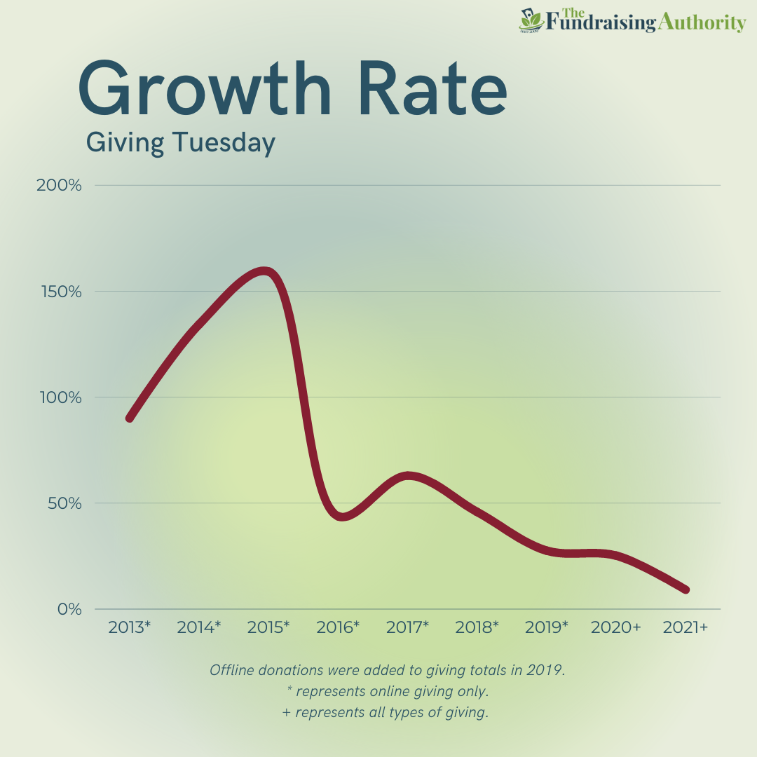 And momentum is slowing. Giving Tuesday’s growth curve isn’t like TikTok’s. It has been leveling off for the past 7 years. Growth is slowing despite significant adoption by the nonprofit community and is now less than 10%.